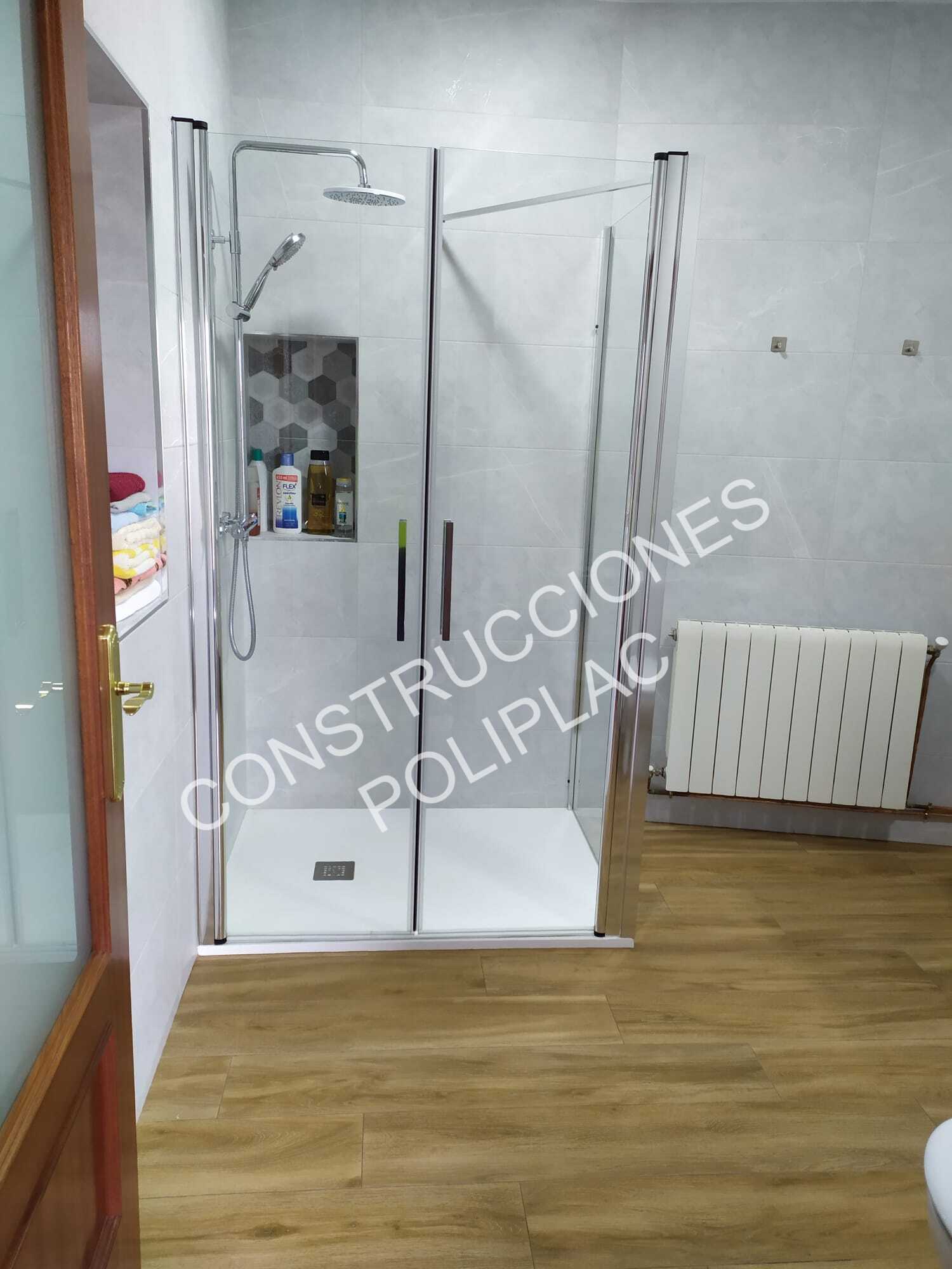BAÑOS: TABIQUES PLACA WA, TECHOS DE PLADUR, ALICATADOS CON DOS HORNACINAS, SOLADO PORCELANICO RECTIFICADO 120X20 IMITACION MADERA.