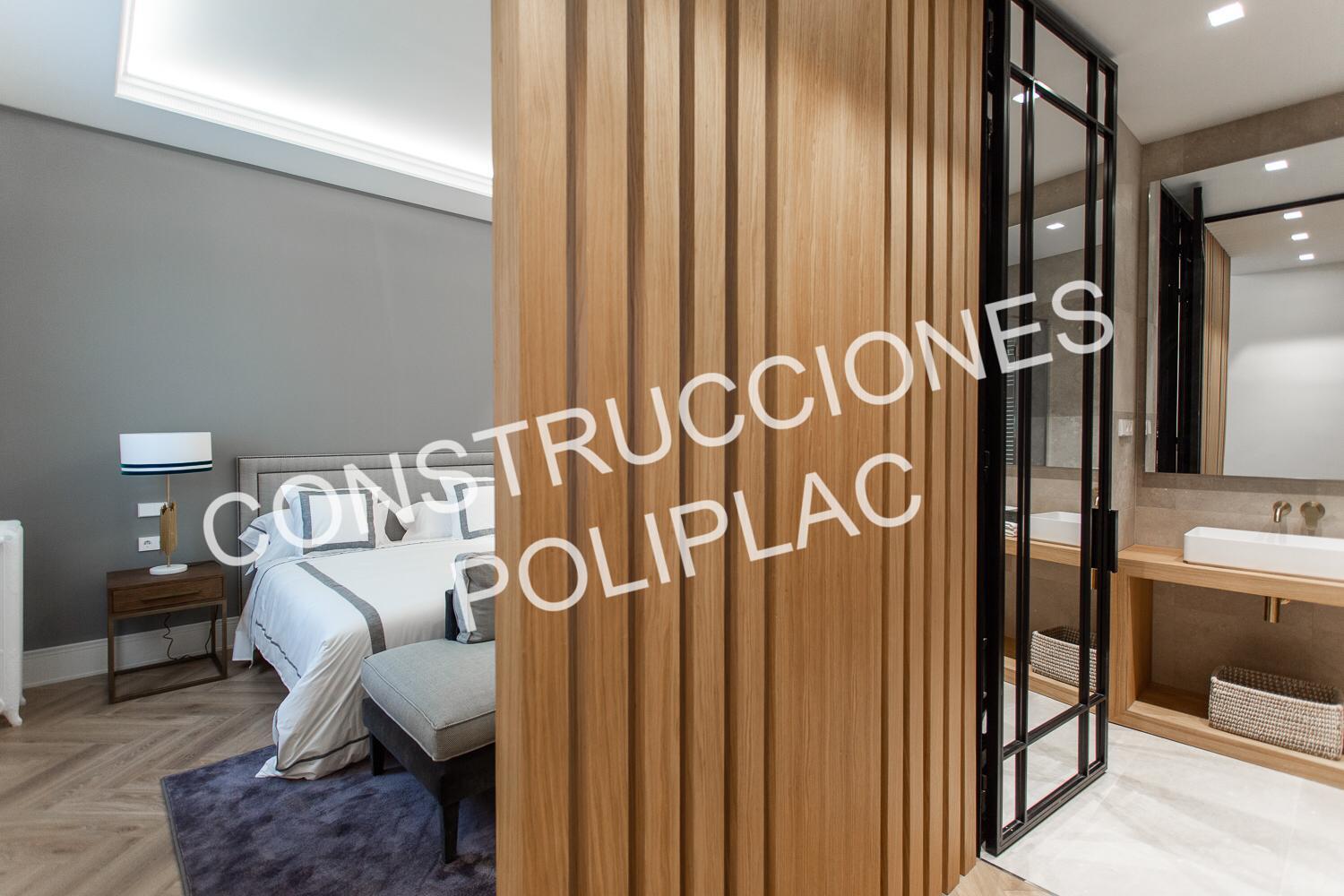 DORMITORIOS: SOLADO DE MADERA NATURAL COLOCADA A ESPIGA,TABIQUERIA DE PLADUR DE 122MM CON DOS PLACAS DE 13 POR CADA CARA Y TRASDOSADOS DE 72MM CON DOS PLACAS DE 13, TECHOS DE PLADUR CON FOSAS PARA LUCES LED CON MOLDURA DE ESCAYOLA, DIVISIONES DE PALILLERIA DE MADERA Y CERRAMIENTOS DE CERRAJERIA.