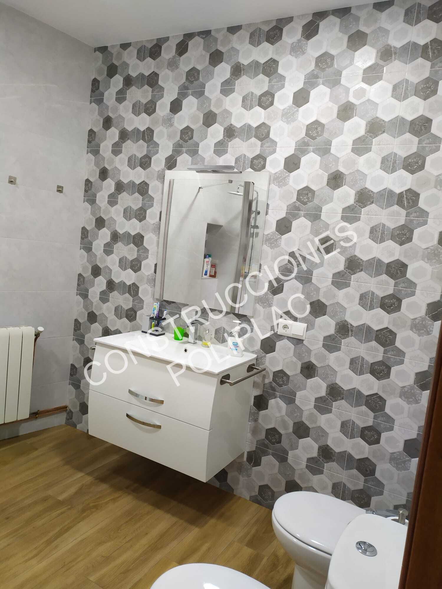 BAÑOS: TABIQUES PLACA WA, TECHOS DE PLADUR, ALICATADOS CON DOS HORNACINAS, SOLADO PORCELANICO RECTIFICADO 120X20 IMITACION MADERA.